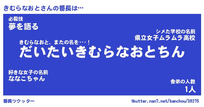 | 伝説のあだ名 | 『不死鳥のスナイパーきむらなおと』 |