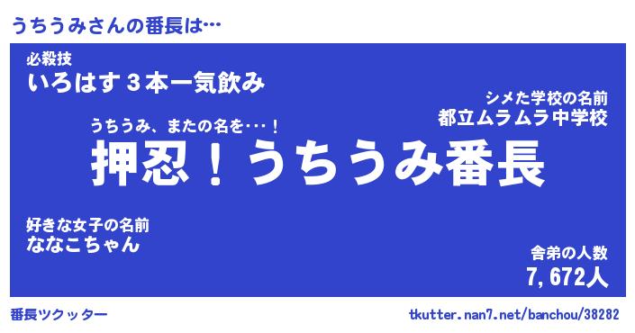 | 伝説のあだ名 | 『封印されしスナイパーうちうみ』 |