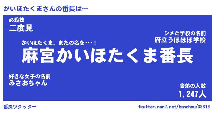 | ヒーロー風カッコイイあだ名 | 『スーパーカイホタクマ』『黄金騎士カイ』 |