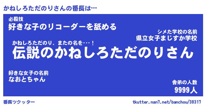 | 伝説のあだ名 | 『伝説のスナイパーかねしろただのり』 |
