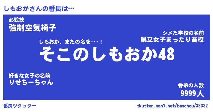 | 男性向けラノベタイトル風あだ名 | 『しもおかの憂鬱』 |