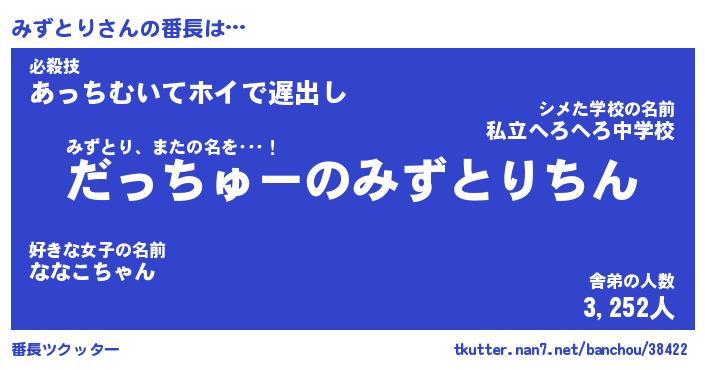 | ヒーロー風カッコイイあだ名 | 『スーパーミズトリ』『天弓騎士ミズ』 |