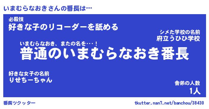| 肩書あだ名 | 『いまむらなおき店長』 |