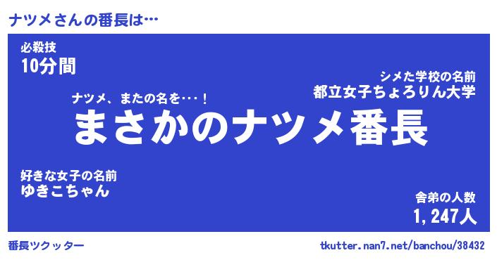| ヒーロー風カッコイイあだ名 | 『スーパーナツメ』『ウルトラナツメマン』 |