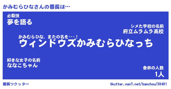| ヒーロー風カッコイイあだ名 | 『スーパーカミムラヒナ』『黄金騎士カミ』 |