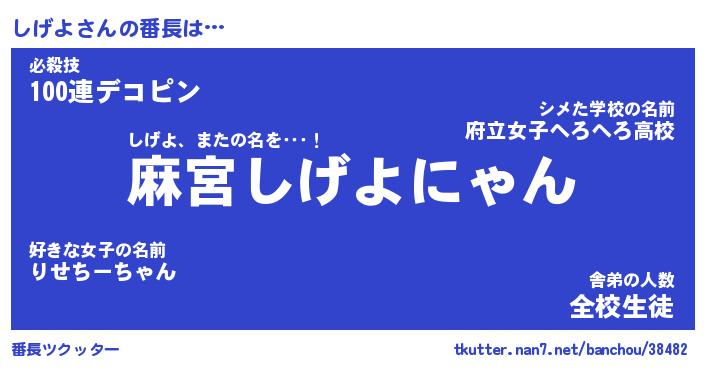 | 意味不明あだ名 | 『ペロリンしげよ』『しげよフォーエバー』 |