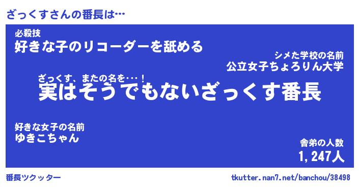 | ヘコむあだ名 | 『ざっにー』『酢こんぶ』『ざっっぺ』 |