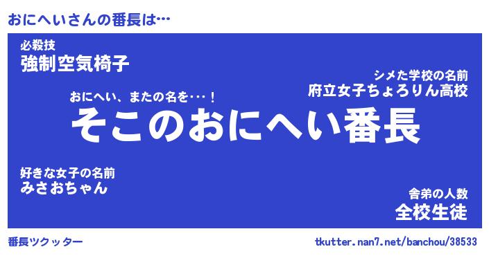 | 意味不明あだ名 | 『ペロリンおにへい』『永久保存おにへい』 |