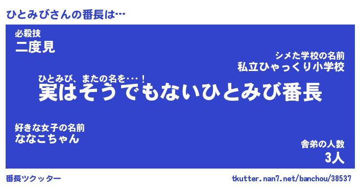 | ヘコむあだ名 | 『ひともー』『酢こんぶ』『ひとっ子』 |