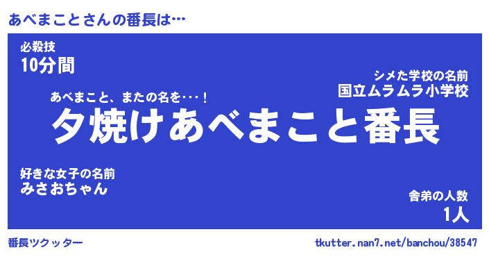 | ヒーロー風カッコイイあだ名 | 『スーパーアベマコト』『黄金騎士アベ』 |