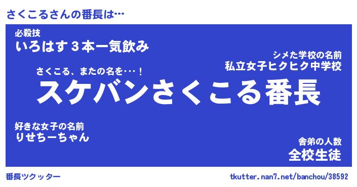 | 意味不明あだ名 | 『ペロリンさくこる』『永久保存さくこる』 |