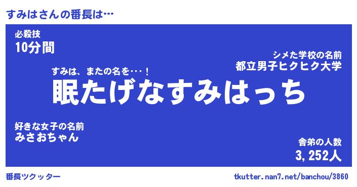 | ヒーロー風カッコイイあだ名 | 『スーパースミハ』『ウルトラすみはマン』 |