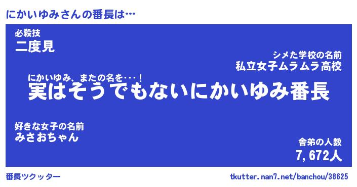 | 肩書あだ名 | 『にかいゆみ店長』『にかいゆみ大統領』 |