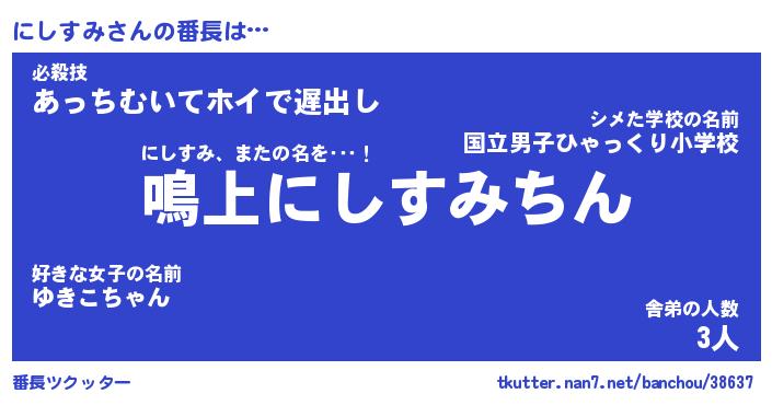 | 意味不明あだ名 | 『ペロリンにしすみ』『永久保存にしすみ』 |