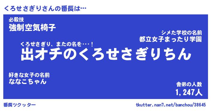 | 男性向けラノベタイトル風あだ名 | 『くろせさぎりの憂鬱』 |