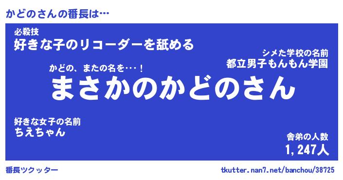 | 伝説のあだ名 | 『伝説のスナイパーかどの』 |