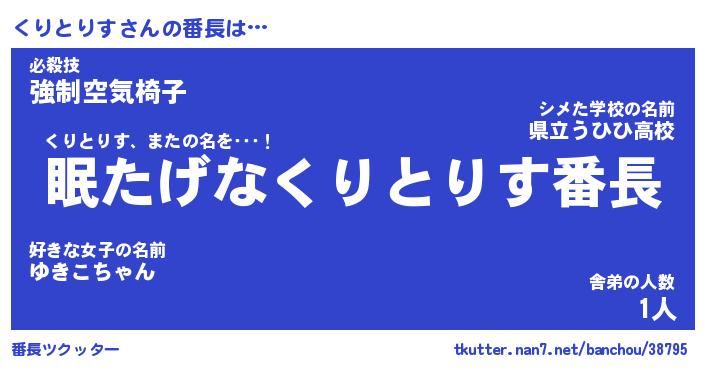 | 伝説のあだ名 | 『封印されしスナイパーくりとりす』 |