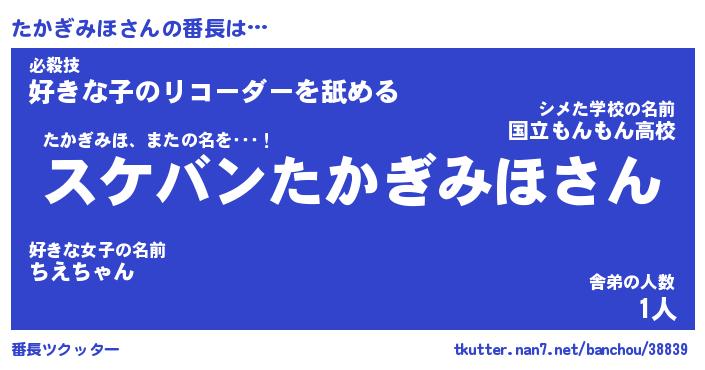 | 肩書あだ名 | 『たかぎみほ御曹司』『たかぎみほ校長』 |