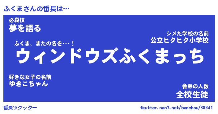 | ヒーロー風カッコイイあだ名 | 『スーパーフクマ』『ウルトラふくまマン』 |