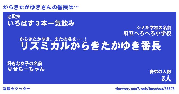 | ヒーロー風カッコイイあだ名 | 『スーパーカラキタカユキ』 |