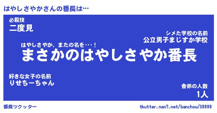 | ヒーロー風カッコイイあだ名 | 『スーパーハヤシサヤカ』『黄金騎士ハヤ』 |