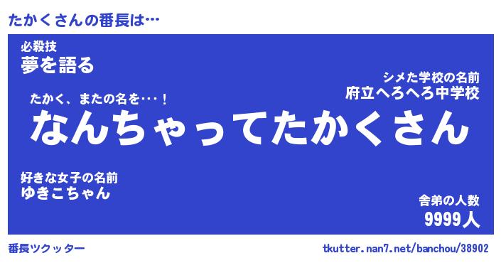 | ヒーロー風カッコイイあだ名 | 『スーパータカク』『ウルトラたかくマン』 |