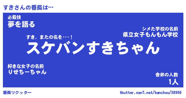 | 伝説のあだ名 | 『不死鳥の竜騎士すき』『最古の忍者すき』 |