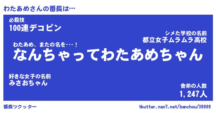 | ファンタジー風あだ名 | 『ワタフェル』『エターナルワタアメー』 |