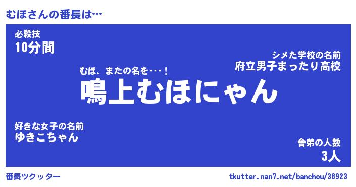 | ヘコむあだ名 | 『むほにー』『なまこ酢』『むほ太郎』 |
