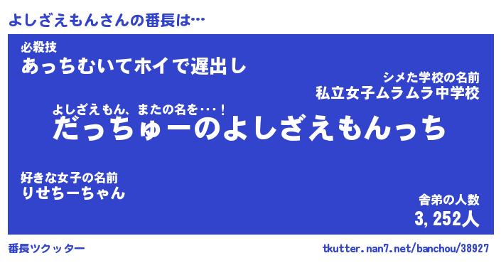 | ポケモン風あだ名 | 『ヨシチュウ』『ヨシザダネ』 |
