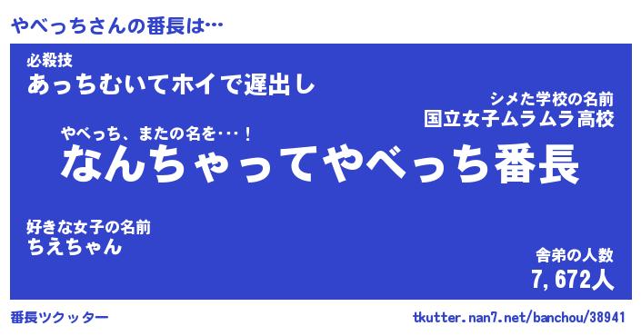 | 意味不明あだ名 | 『ペロリンやべっち』『永久保存やべっち』 |