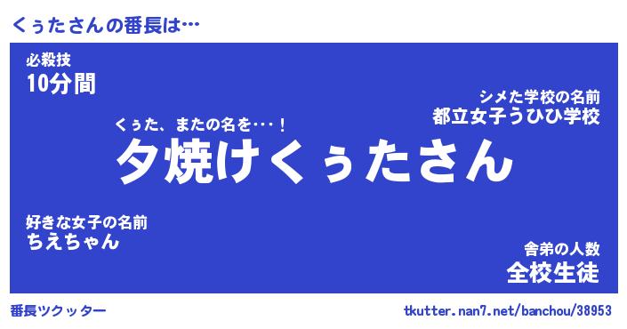 | ヒーロー風カッコイイあだ名 | 『スーパークゥタ』『ウルトラくぅたマン』 |