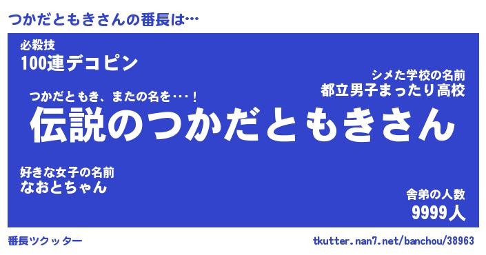 | ヒーロー風カッコイイあだ名 | 『スーパーツカダトモキ』『黄金騎士ツカ』 |