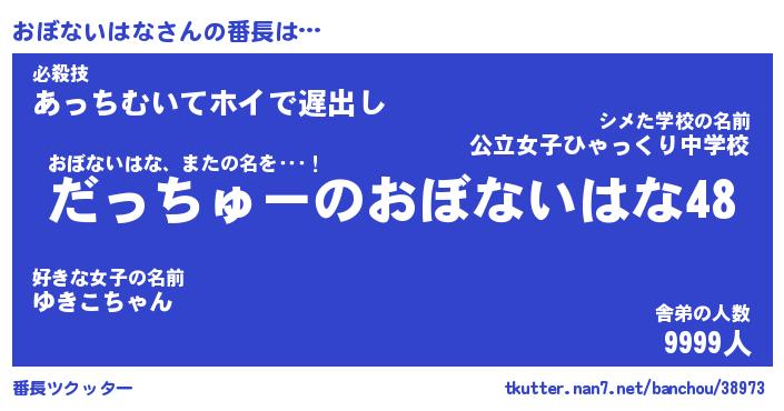 | 男性向けラノベタイトル風あだ名 | 『おぼないはなの憂鬱』 |