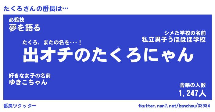 | 意味不明あだ名 | 『ペロリンたくろ』『たくろフォーエバー』 |
