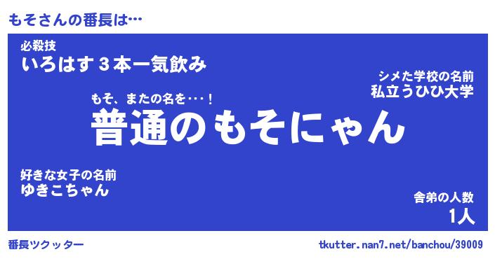 | ヘコむあだ名 | 『もそにー』『なまこ酢』『もそお』 |