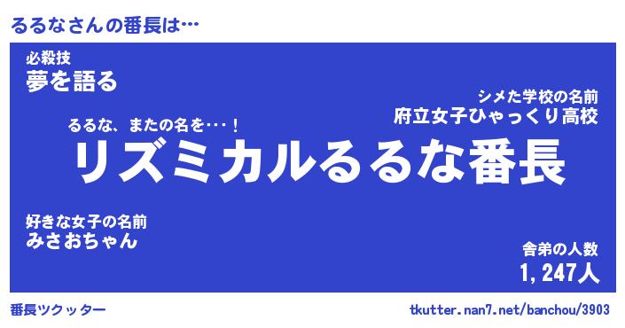 | 肩書あだ名 | 『るるな社長令嬢』『るるな総理大臣』 |