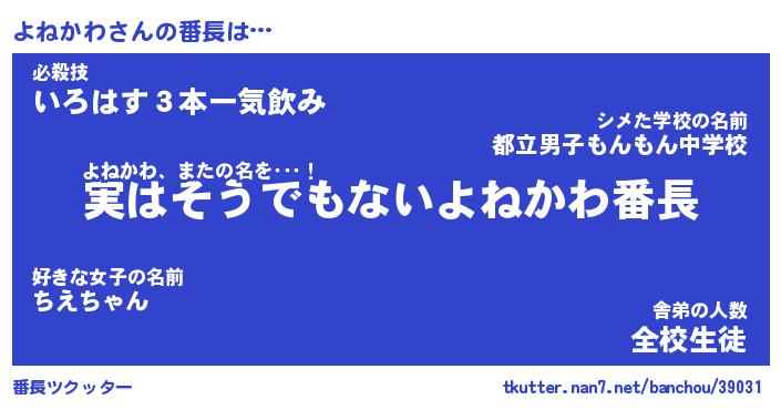 | 伝説のあだ名 | 『封印されしスナイパーよねかわ』 |