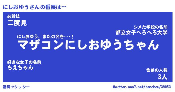 | ファンタジー風あだ名 | 『ニシフェル』『エターナルニシオユウー』 |
