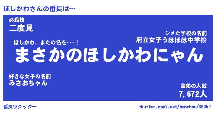 | 肩書あだ名 | 『ほしかわ御曹司』『ほしかわ国家主席』 |