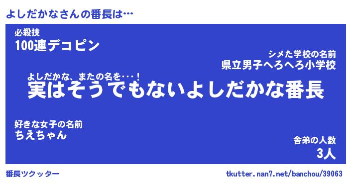 | ポケモン風あだ名 | 『ヨシチュウ』『ヨシダダネ』 |
