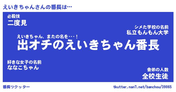 | 伝説のあだ名 | 『伝説のスナイパーえいきちゃん』 |