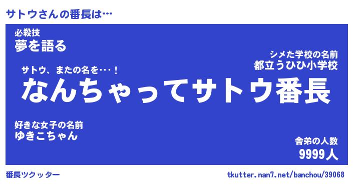 | ヒーロー風カッコイイあだ名 | 『スーパーサトウ』『ウルトラサトウマン』 |