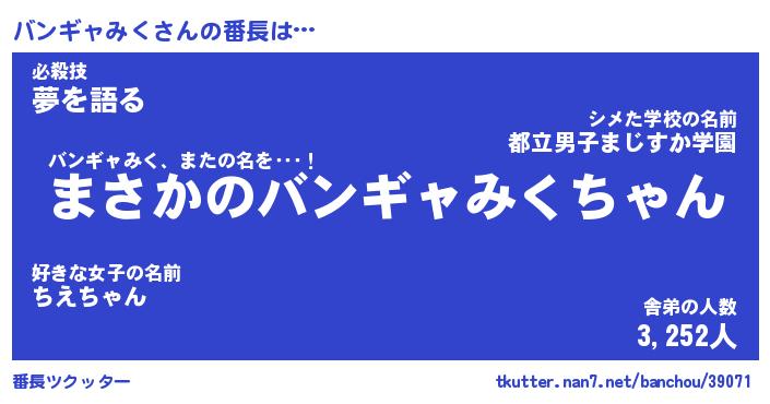 | 伝説のあだ名 | 『伝説のスナイパーバンギャみく』 |