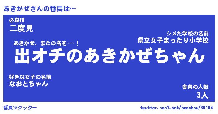 | 欧米人風あだ名 | 『マイケルあきかぜ』『ウサインあきかぜ』 |