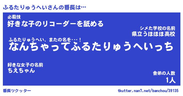 | 意味不明あだ名 | 『ペロリンふるたりゅうへい』 |