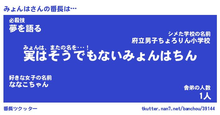 | ポケモン風あだ名 | 『ミョチュウ』『ミョンダネ』 |