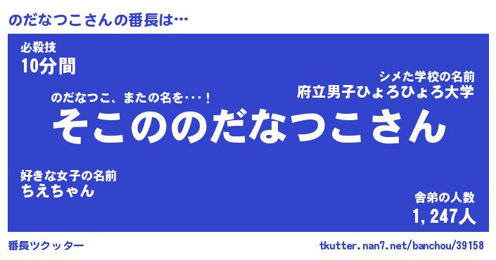 | 2回繰り返すあだ名 | 『のだのだ』『ののだだ』『なあなあ』 |