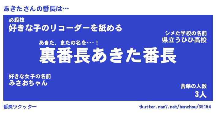 | ヘコむあだ名 | 『あきもー』『なまこ酢』『あき太郎』 |