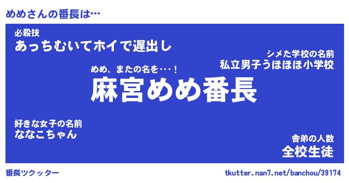 | 2回繰り返すあだ名 | 『めめめめ』『めめめめ』『いらいら』 |
